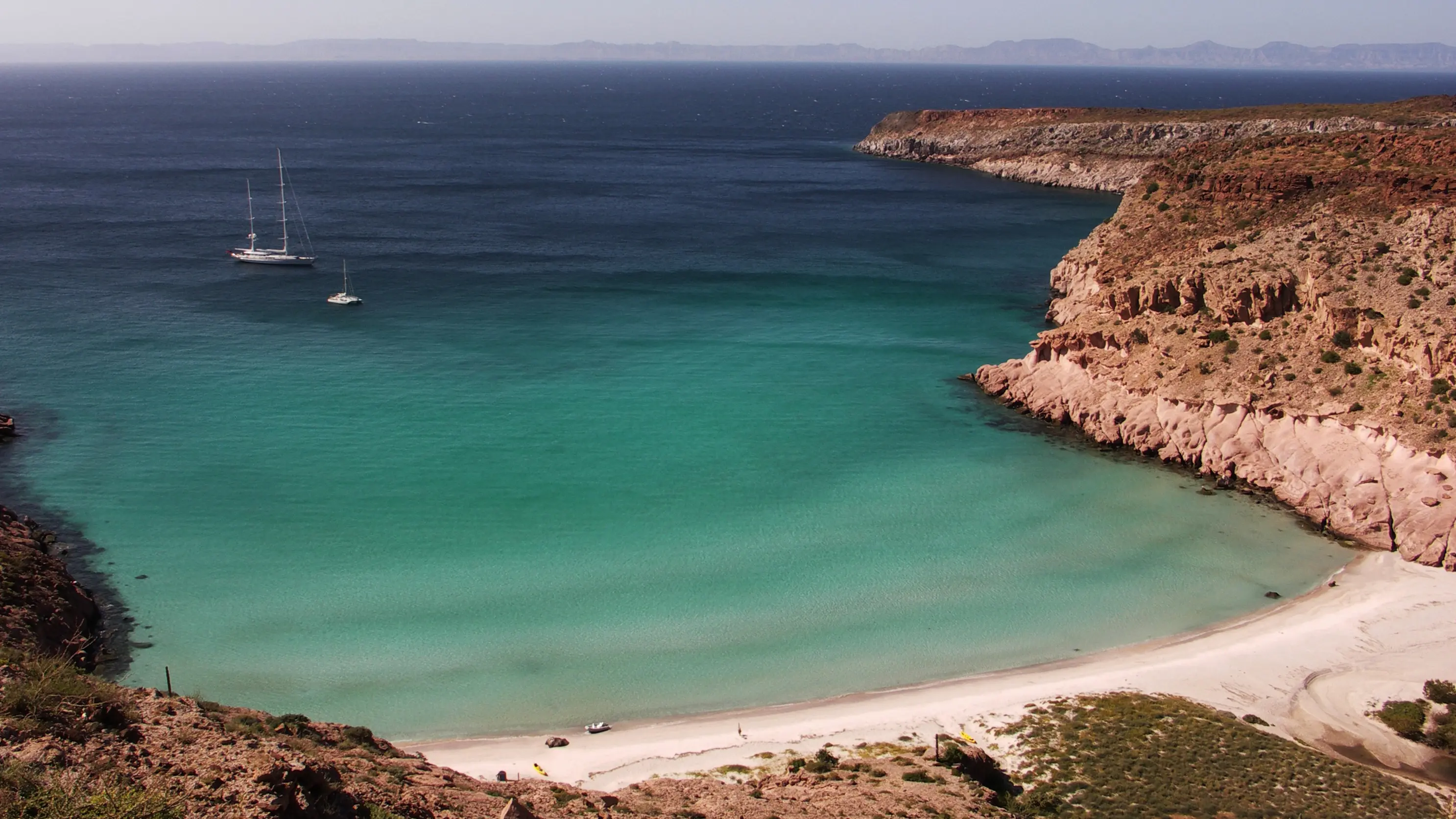 Ensenada Grande is an excellent destination for beach lovers and a wonderful location to set anchor and spend a night or two. The main beach is a long stretch of white sand that curves gently around the bay. It offers plenty of space for sunbathing, swimming, and relaxing. Its unique geological formations, transparent waters, and diverse marine life, make this place a paradise for nature lovers.